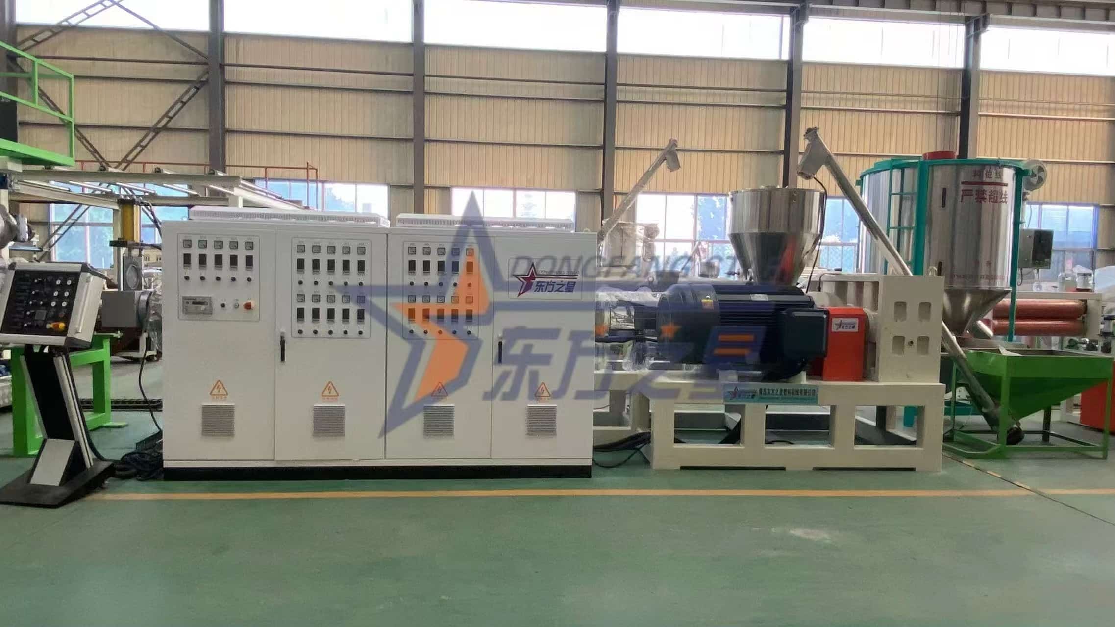 Opis: Wyposażony w hydrauliczny zmieniacz sit HW-180, pozwala na szybką wymianę sita bez zatrzymywania maszyny, co znacznie ogranicza ilość odpadów i przestojów. Cała linia wykorzystuje regulację prędkości konwersji częstotliwości ABB, aby osiągnąć precyzyjną synchronizację od kalandrowania i trakcji do cięcia, zapewniając ciągłą i stabilną produkcję 24 godziny na dobę, 7 dni w tygodniu.