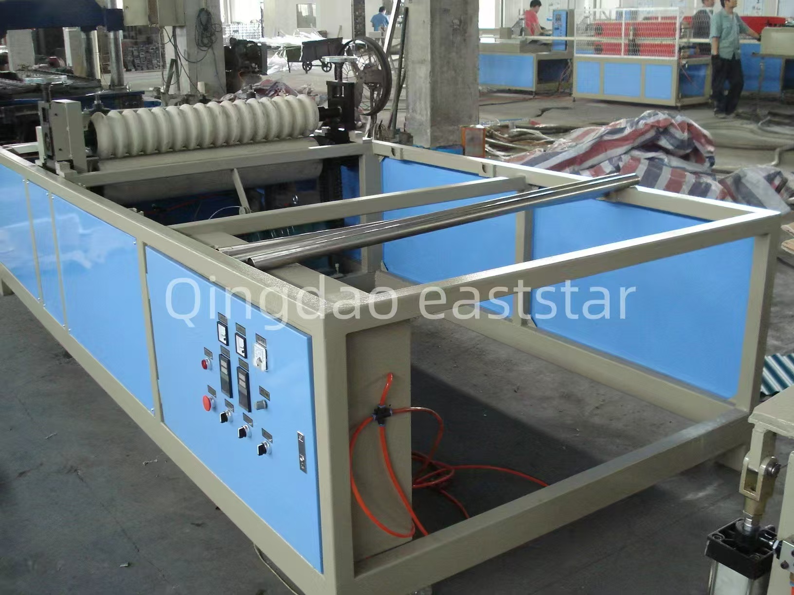 Podstawowe wyposażenieLinia do produkcji blach falistych współwytłaczanych PC+ASAobejmuje dwie wytłaczarki jednoślimakowe SJ-120 i SJ-40, służące do wytłaczania odpowiednio warstwy PC i warstwy ASA.