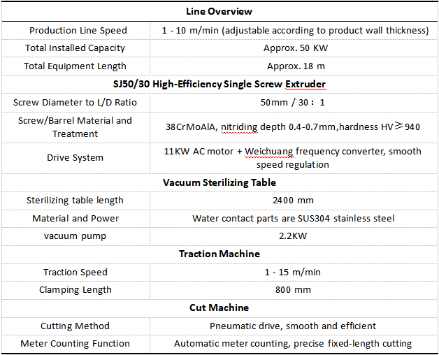 Konfiguracja do tegoLinia do produkcji osłon świetlówekkoncentruje się wokół kilku kluczowych szczegółów wyposażenia. Sercem jest wytłaczarka jednoślimakowa SJ50/30. Zawiera śrubę 50 mm o stosunku długości do średnicy 30 do 1. Zarówno śruba, jak i cylinder są wykonane z azotowanej stali 38CrMoAlA, która pomaga całkowicie stopić materiały, utrzymuje równowagę i zapewnia stałą wydajność nawet w przypadku twardych materiałów, takich jak PC, PS i ABS.Linia do produkcji osłon rur lampowychłączy silnik prądu przemiennego o mocy 11 kW z przetwornicą częstotliwości Weichuang, dzięki czemu prędkość pozostaje pod precyzyjną kontrolą. Ponadto automatyczny podajnik próżniowy i suszarka osuszająca dbają o wilgotność surowców takich jak PC i ABS, zapewniając wysoką jakość stopu w procesie wytłaczania. Cała linia jest sterowana centralnie za pośrednictwem części niskonapięciowych firmy Siemens i sterowników temperatury firmy Omron, dzięki czemu wszystko działa niezawodnie.