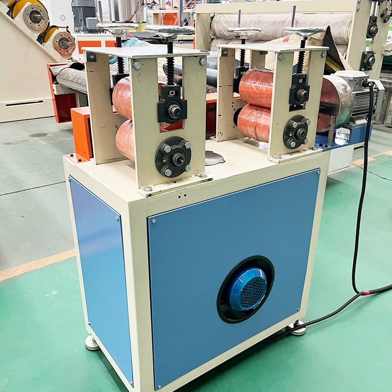 Maszyna do wytłaczania krawędzi worków PE obejmuje sprężarkę jednoślimakową - formę głowicy maszyny - magazyn kształtowania próżniowego - ciągnik trakcyjny - uzwojenie