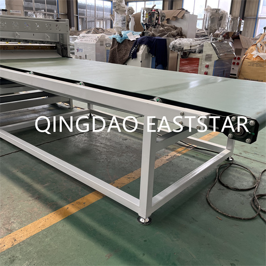 Sprzęt do paneli z PCV składa się głównie z wytłaczarki dwuślimakowej, formy płytowej, kalandra trójwalcowego, wspornika chłodzącego, maszyny trakcyjnej z wałkiem gumowym, maszyny do cięcia i urządzenia transportowego.