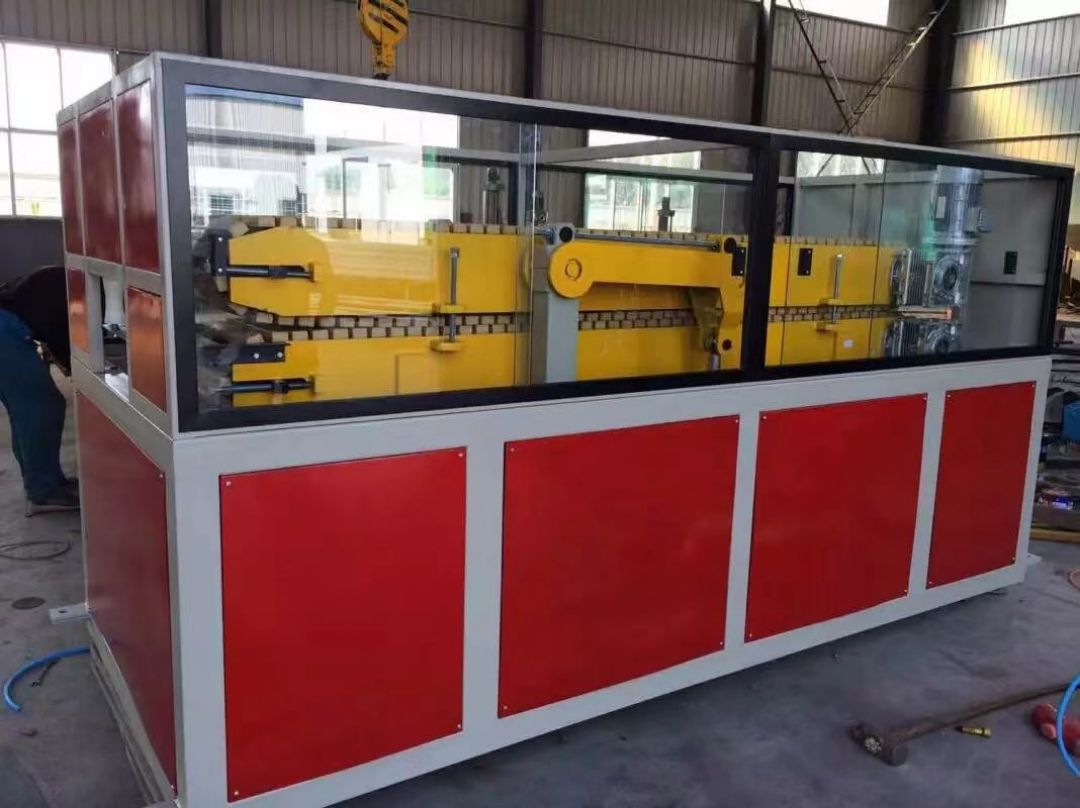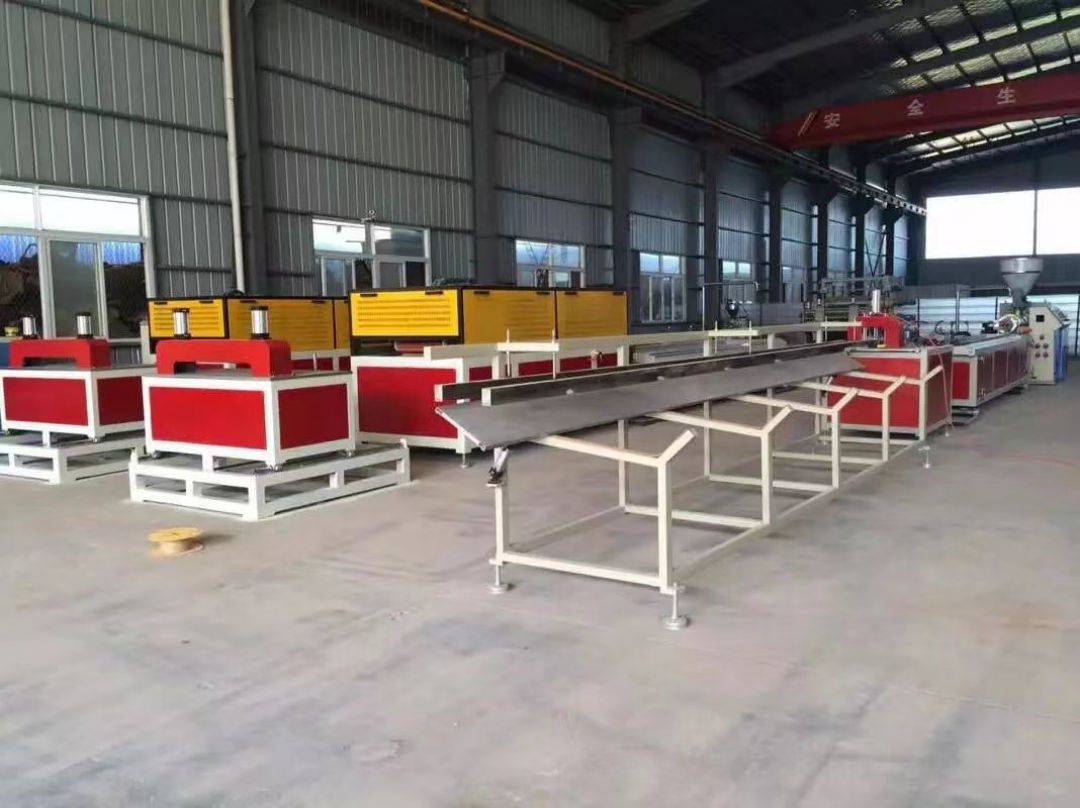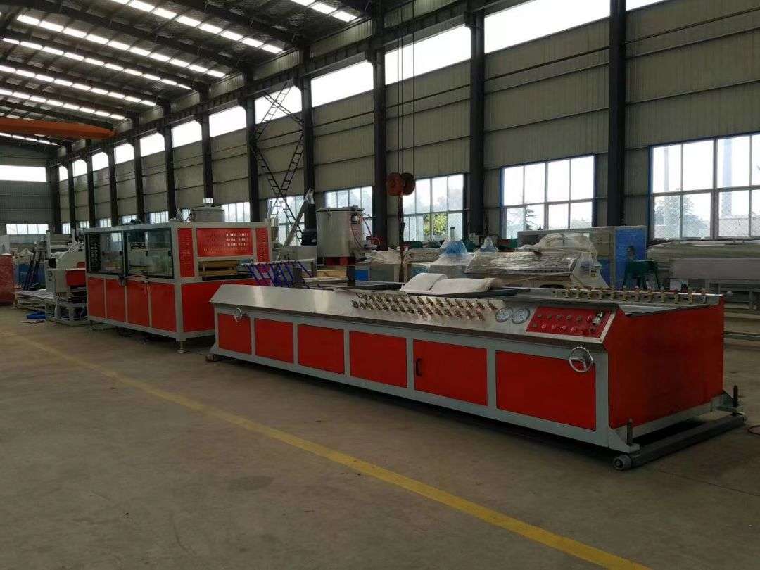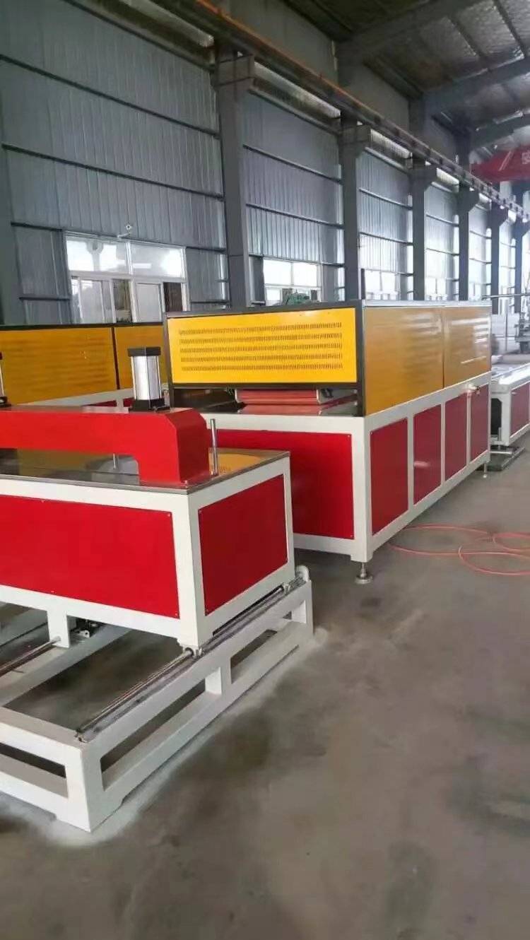 Linia do produkcji paneli ściennych z PCV składa się głównie ze stożkowej wytłaczarki dwuślimakowej, stołu kształtującego próżniowo, ciągnika, maszyny do cięcia i stojaka odbierającego materiał.