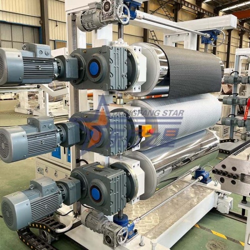 Wyposażony w koreański system dozowania enkodera Autonics, dokładność cięcia sięga ± 1 mm. Docisk pneumatyczny + cięcie typu ścinającego zapewnia płynną i szybką pracę. Cała linia posiada scentralizowany system sterowania, zapewniający automatyczną synchronizację wytłaczania, kalandrowania, trakcji i cięcia, znacznie poprawiając wydajność produkcji.