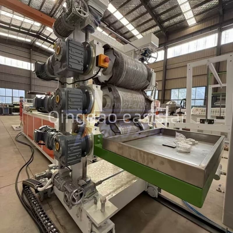 Kalandr 3-walcowy (∮320mm×500mm) posiada niezależnie sterowane, lustrzane walce (twardość RC60-65). Dzięki oddzielnej kontroli temperatury i prędkości zapewnia precyzyjne chłodzenie i kalandrowanie, w wyniku czego powstają arkusze o wyjątkowej płaskości, gładkości i stałej grubości.